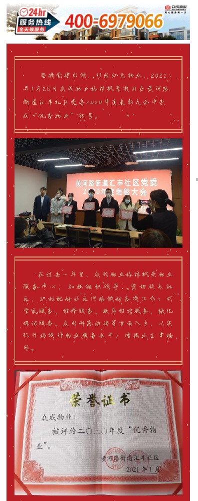 喜报 | 众成物业格林枫景项目荣获“优秀物业”称号