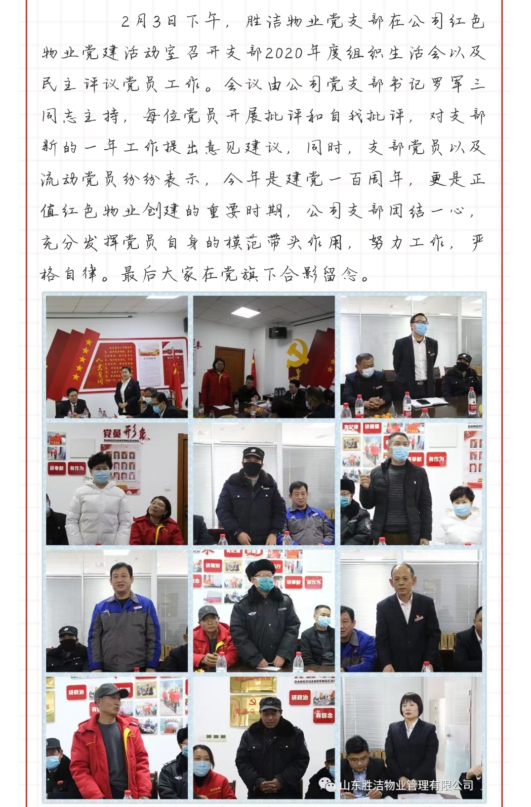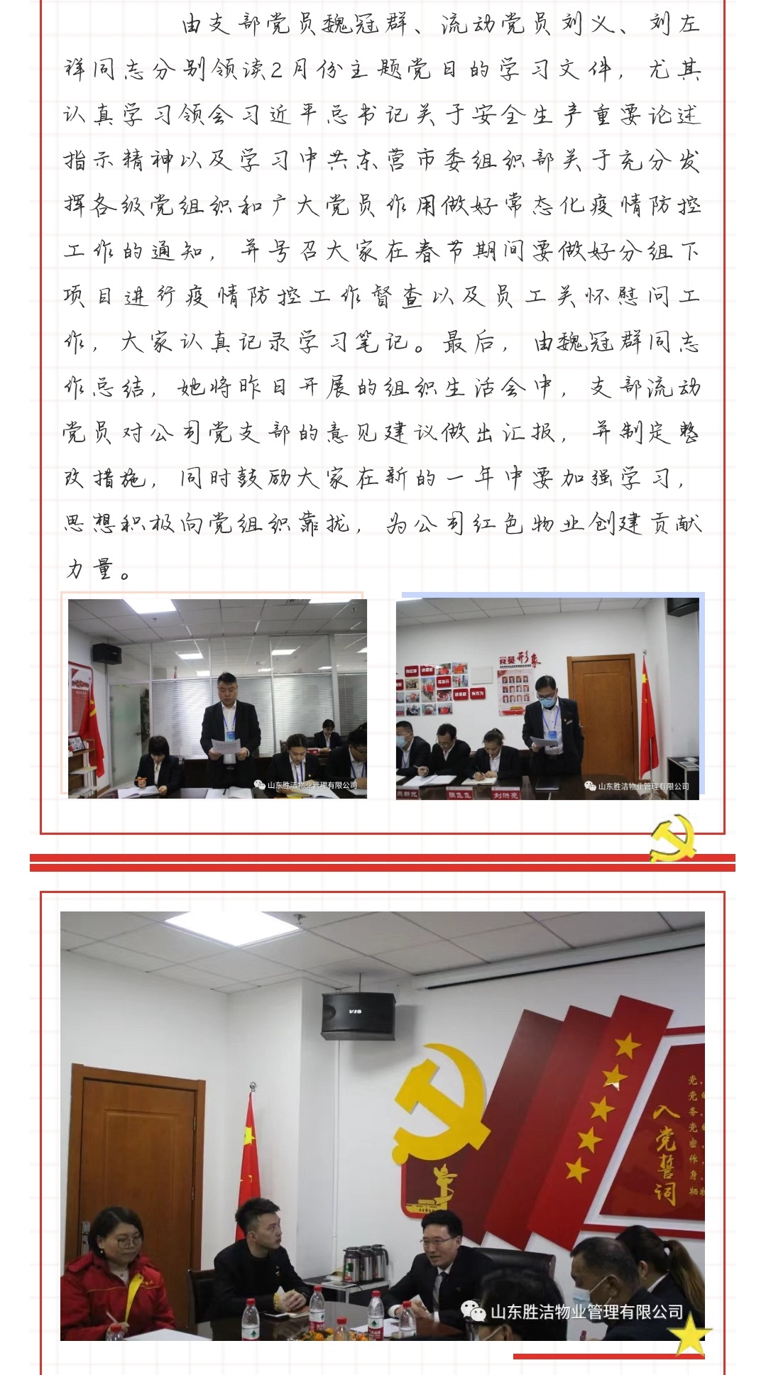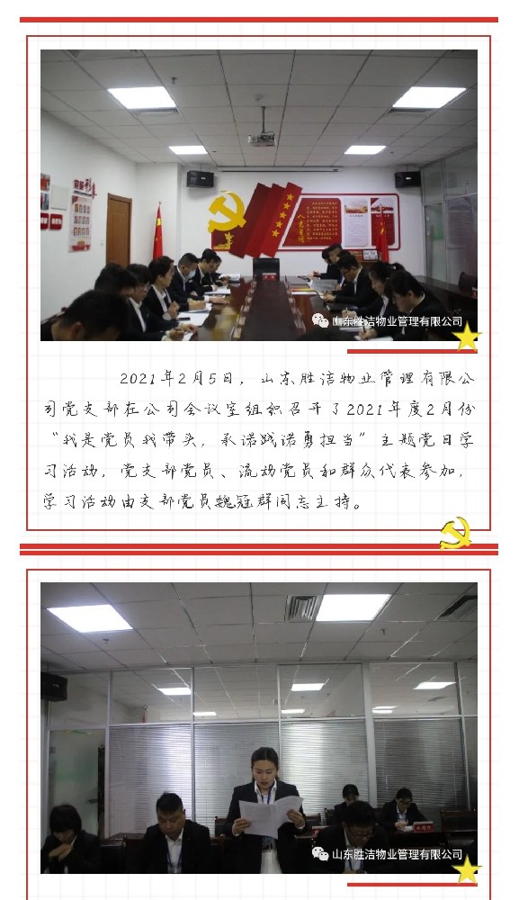 胜洁物业党支部2021年2月份“我是党员我带头,承诺践诺勇担当”主题党日学习活动